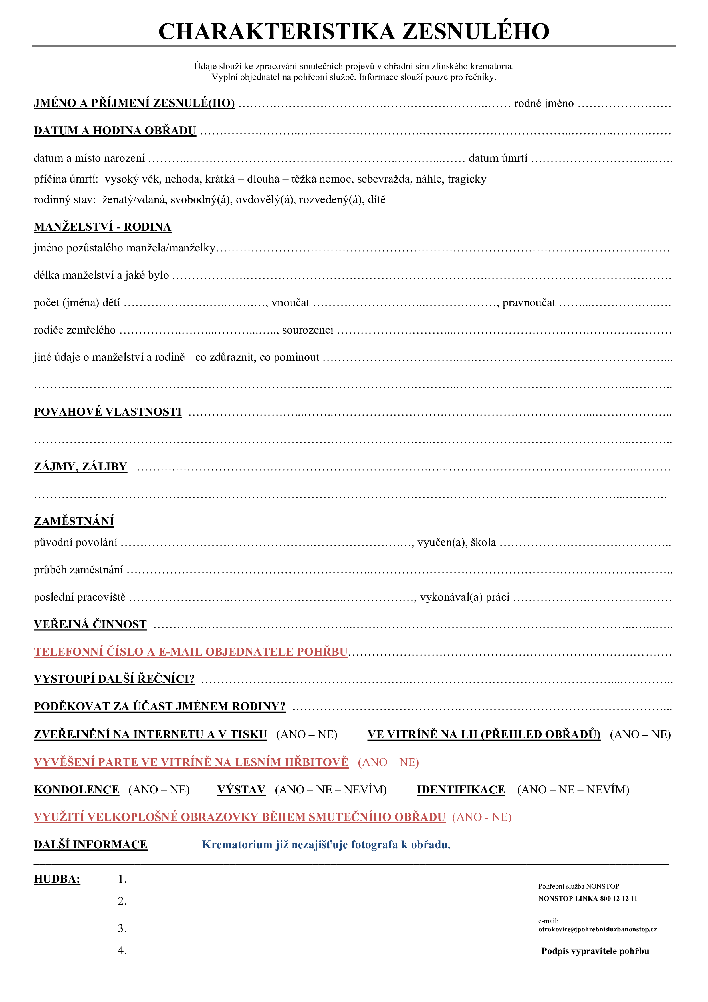 – vyvěšení parte na našich webových stránkách v Přehledu smutečních obřadů
